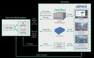 Figure 2 : Configuration de test C-V2X mettant en œuvre une solution à base de jumeaux numériques, fruit de la collaboration entre Anritsu et dSPACE – © Anritsu